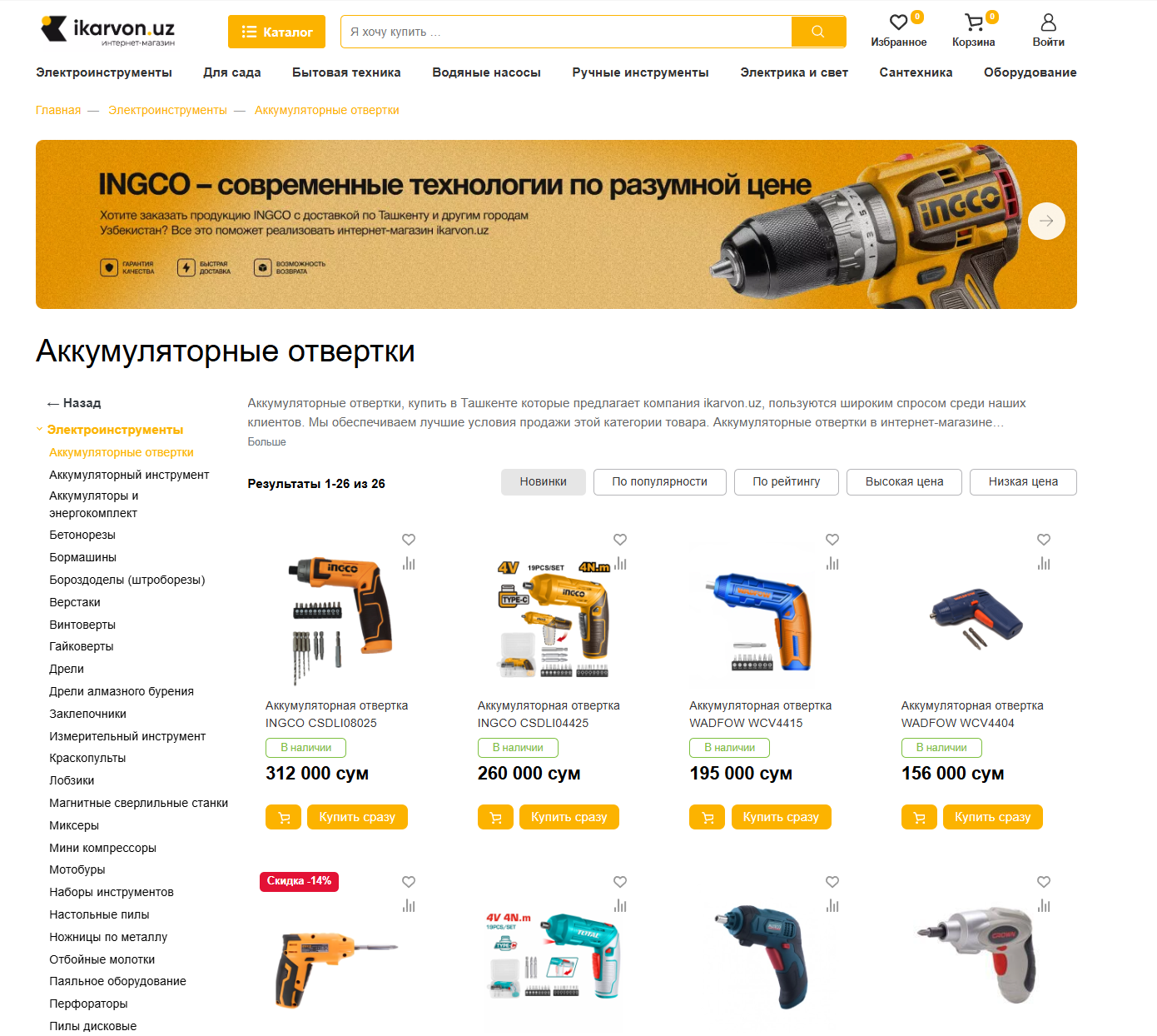 Ikarvon — современный онлайн-магазин, где пользователи могут заказать широкий ассортимент товаров: от строительных материалов до бытовой техники.